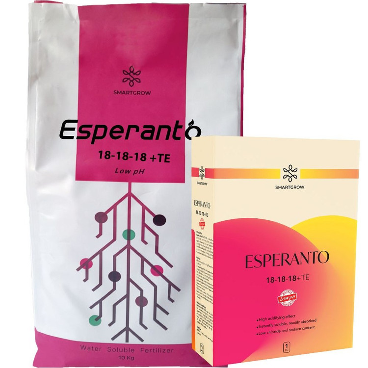اسپرانتو ۱۸-۱۸-۱۸ کاملاً محلول در آب با فرمولاسیون اسیدی است؛ نسبت ۱:۱:۱ میان عناصر پرمصرف در فرمولاسیون این کالا تأمینکننده نیاز تغذیهای گیاهان در تمامی دوره رشد بوده و در تمامی مراحل چرخه رشد رویشی و برای تمامی محصولات کشاورزی قابل استفاده است. نیتروژن موجود در این کالا در بهبود رشد رویشی مؤثر است در حالی که فسفر و پتاسیم موجود در فرمولاسیون در ریشهزایی و بهبود سیستم ریشهای، بهبود فرآیندهای گلدهی و افزایش کمیت و کیفیت عملکرد محصولات اثرگذار است. حضور عناصر ریزمغذی در فرمولاسیون این کالا، تضمین کننده سلامت و تکمیل چرخه رشد و تولید در گیاهان است.